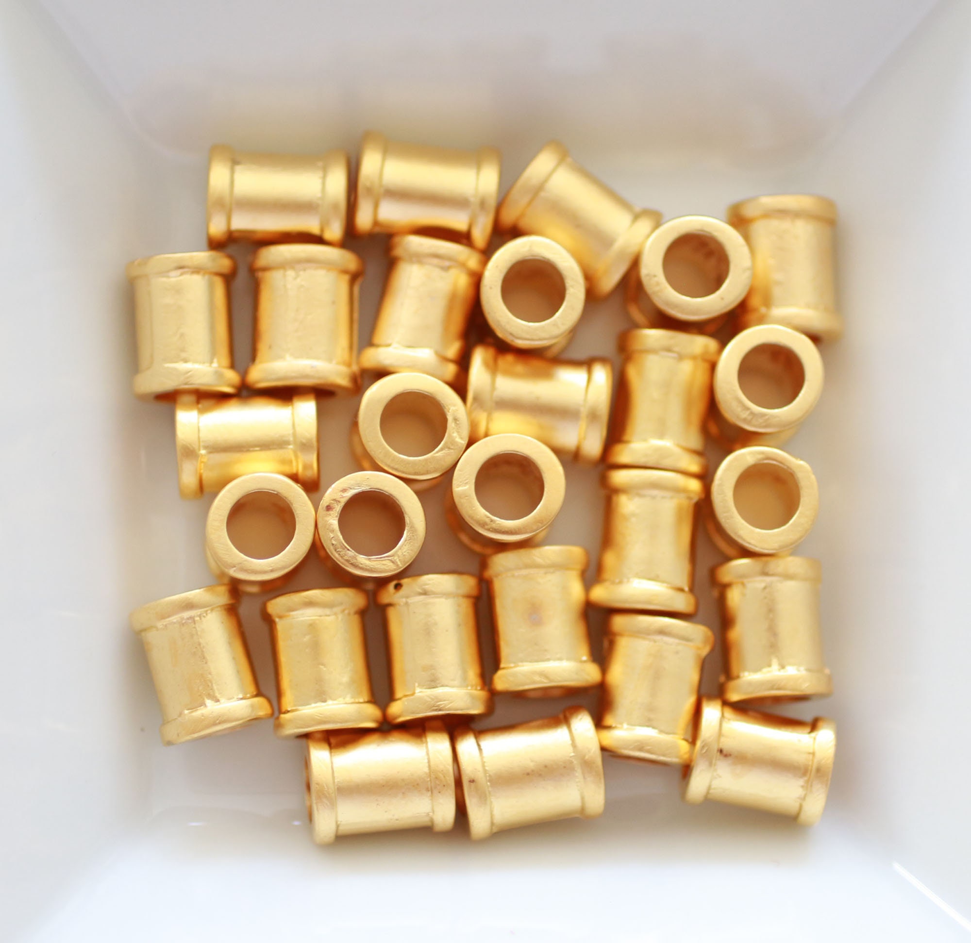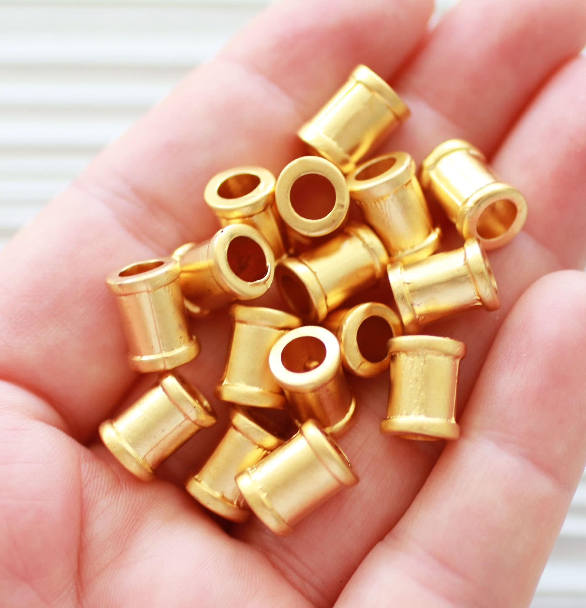 Tube beads, gold rondelle beads, large hole beads, bracelet beads, rondelle, barrel beads, bead spacers, cylinder necklace beads