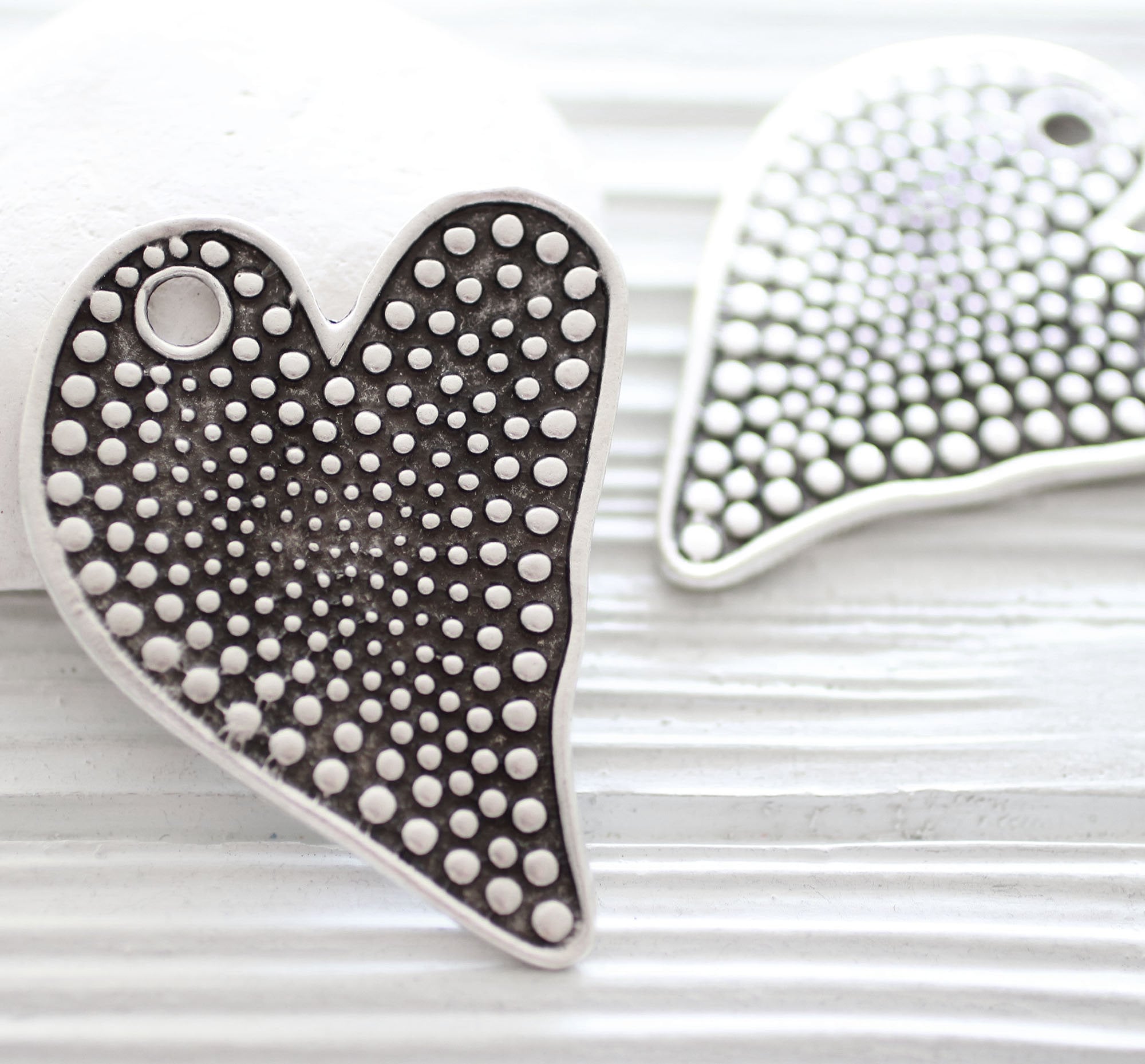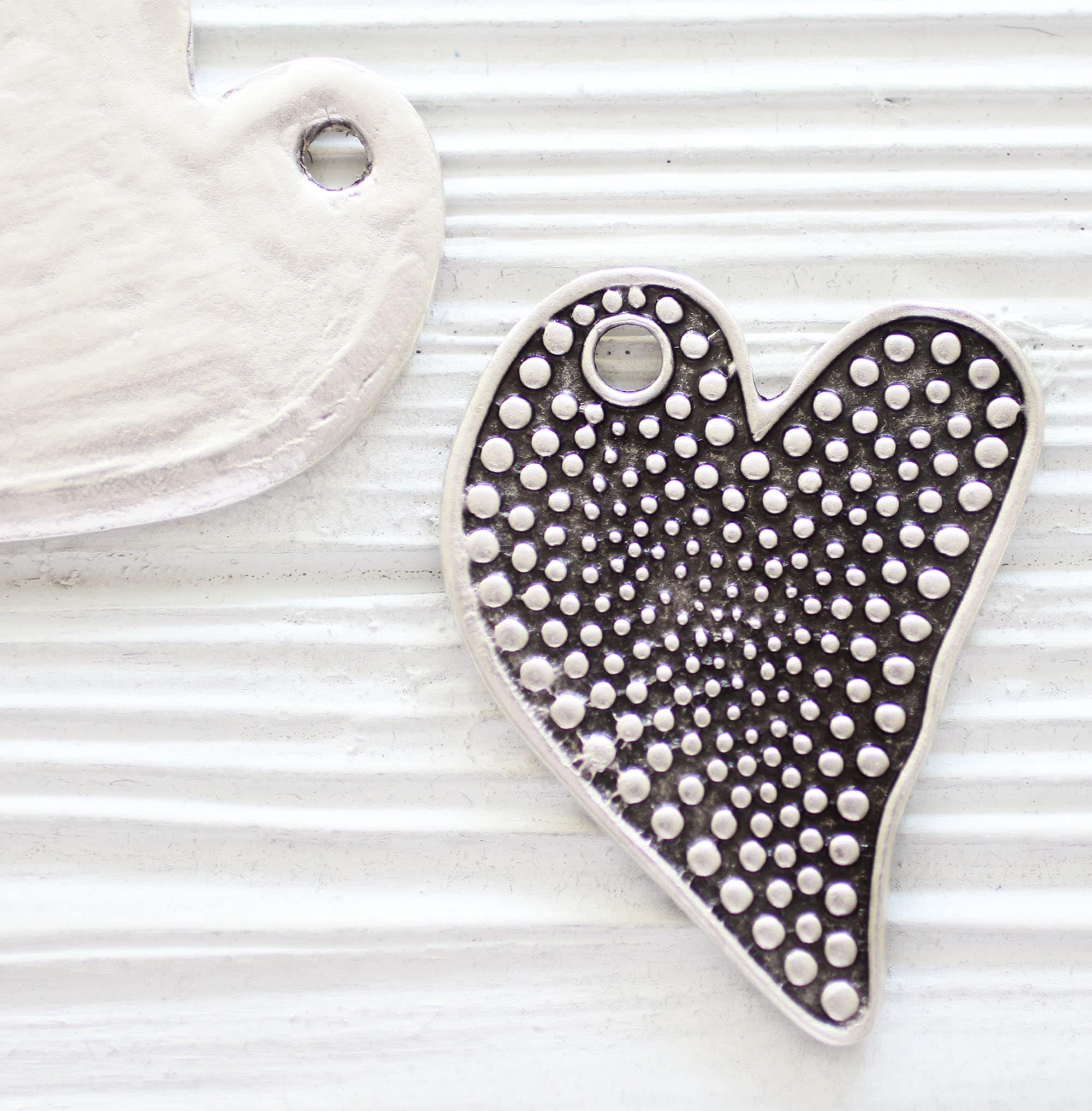 Heart pendant silver, fun pendant, Valentines day gift, large silver pendant, love pendant, large hole pendant, heart findings