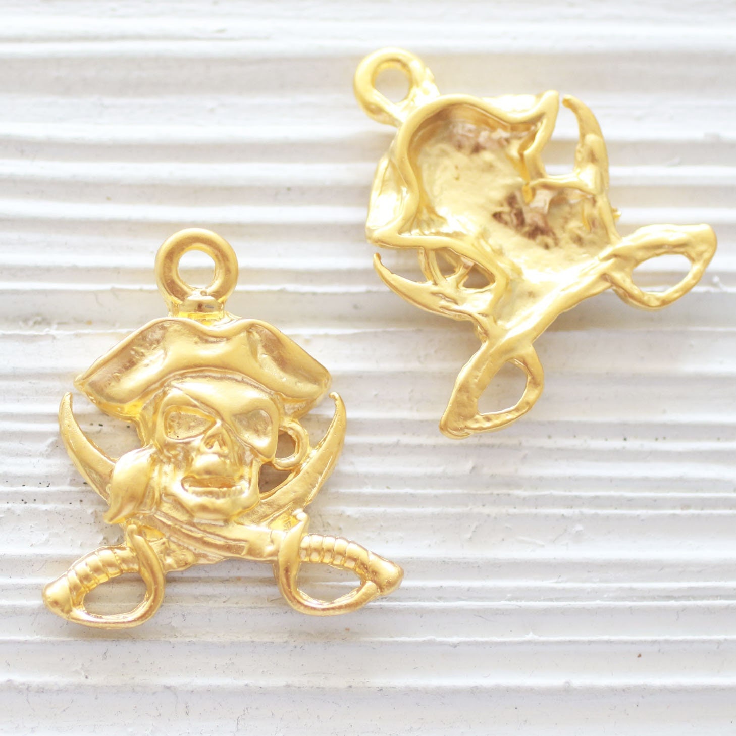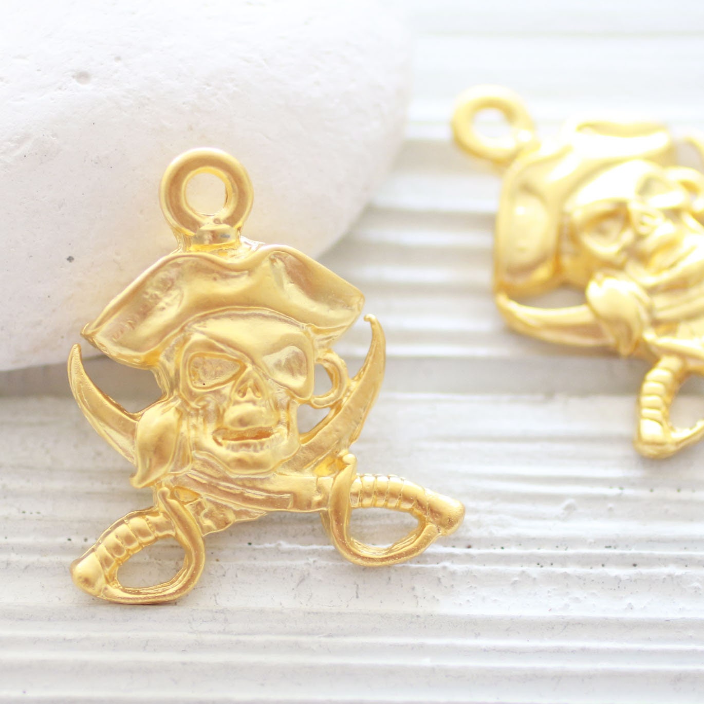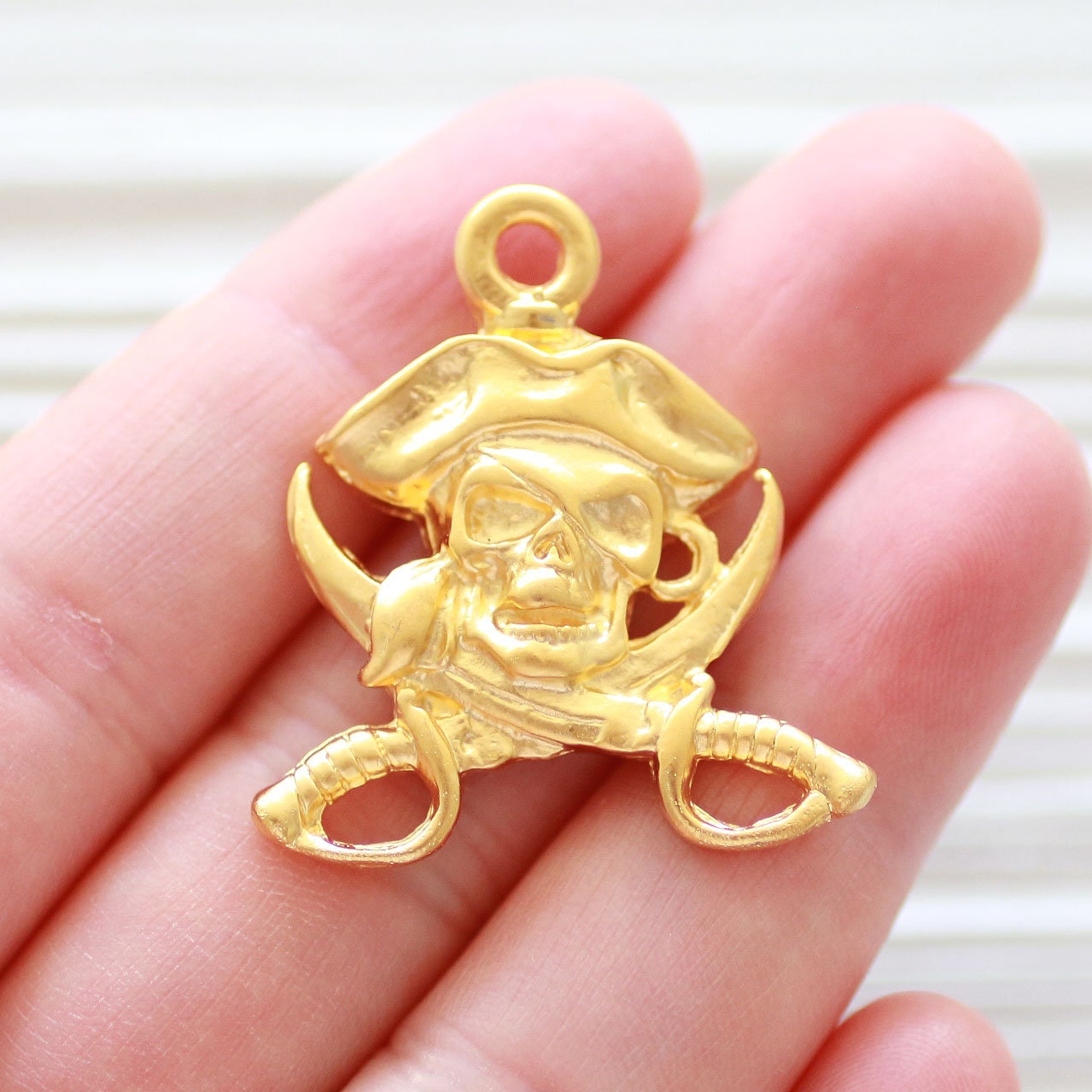 Pirate pendant gold, skull pendant, just dangle, pirate charm, earrings charm, Halloween pendant gold