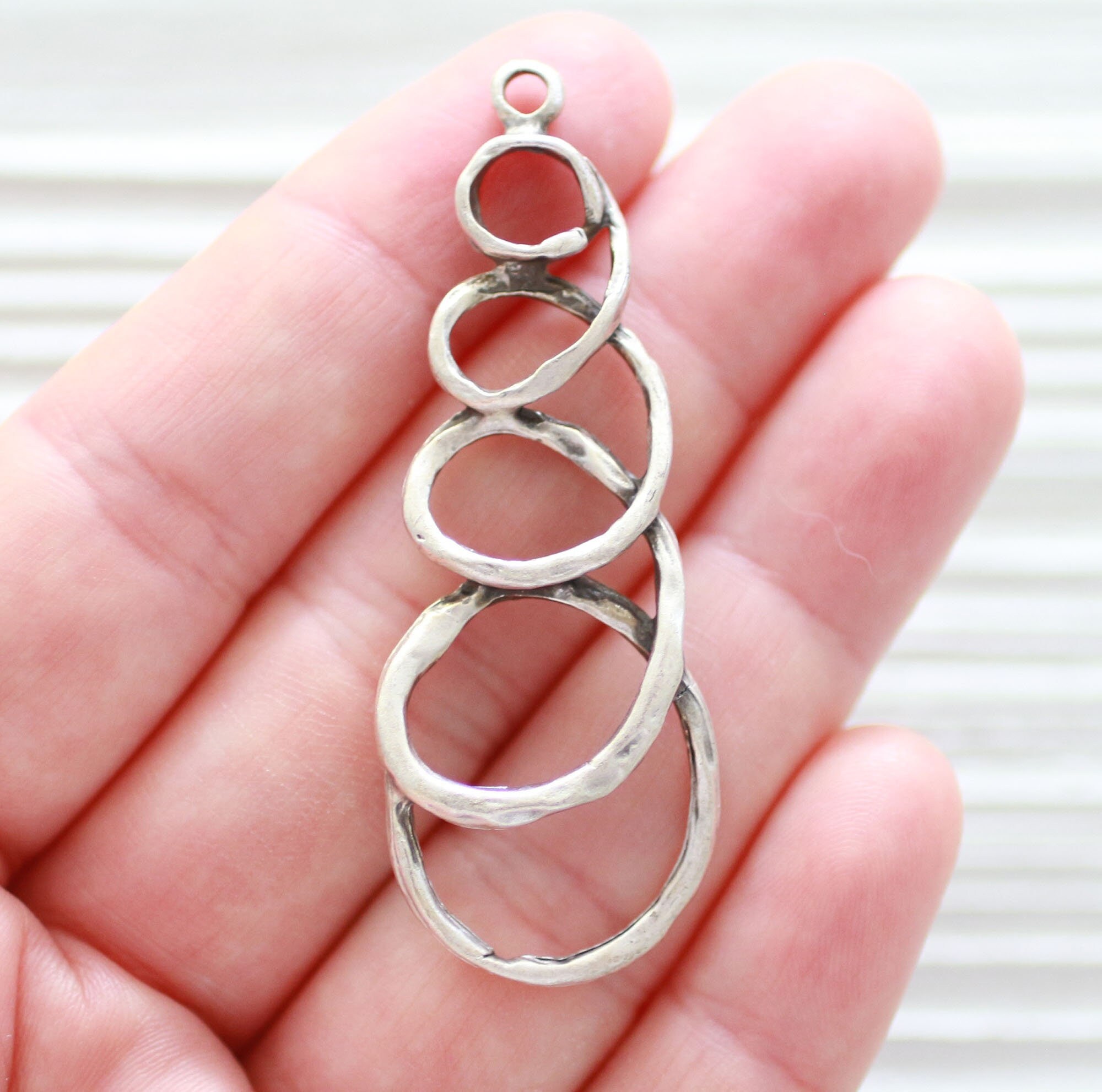 Layered ring pendant, large circle pendant, earrings pendant, fun earrings charm, necklace dangle, silver link pendant, modern pendant