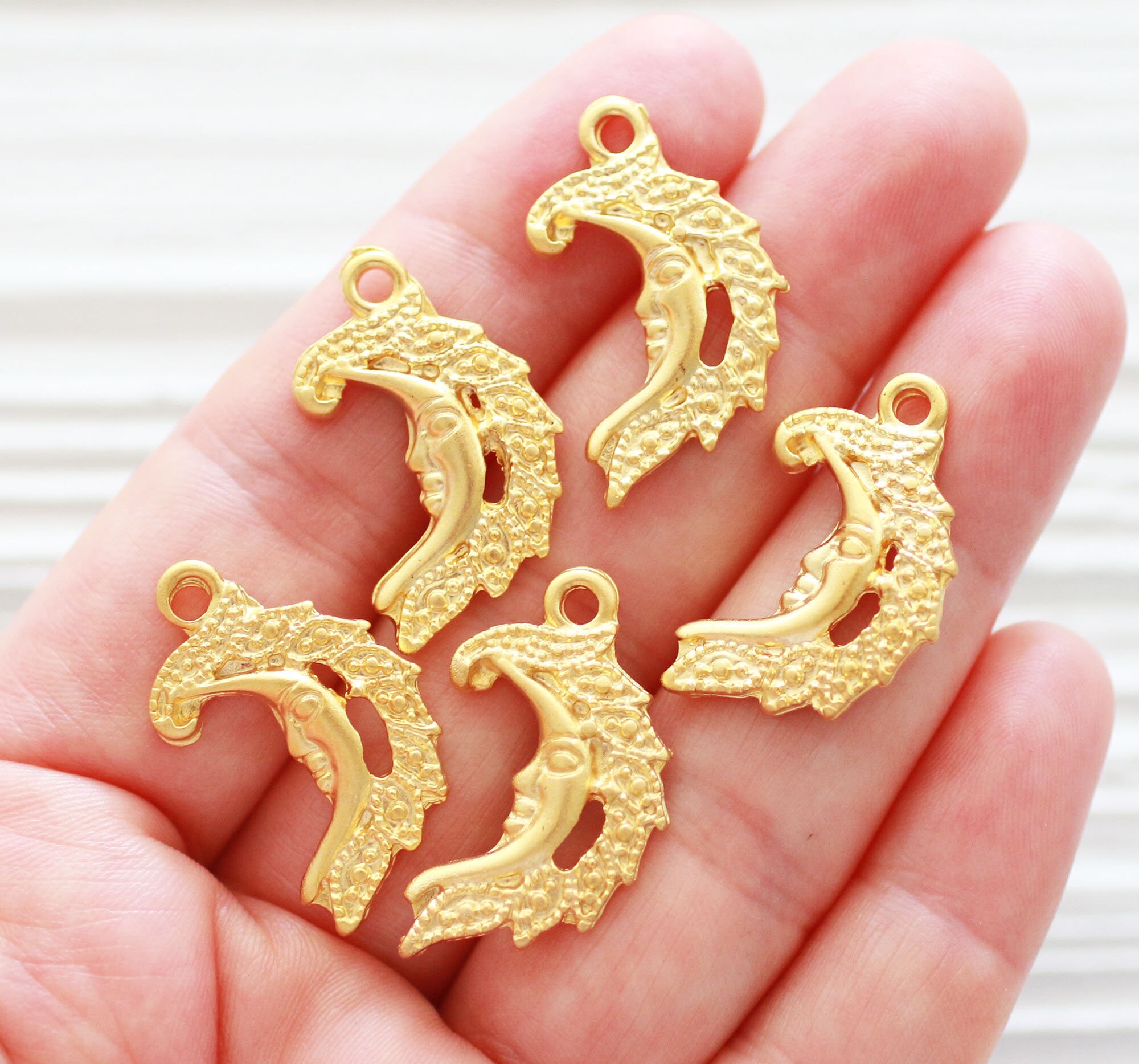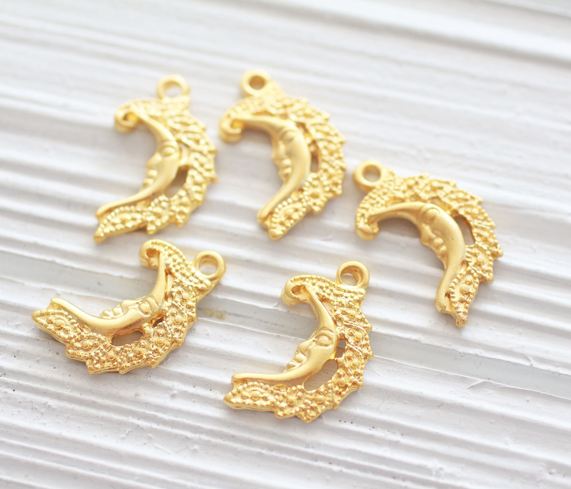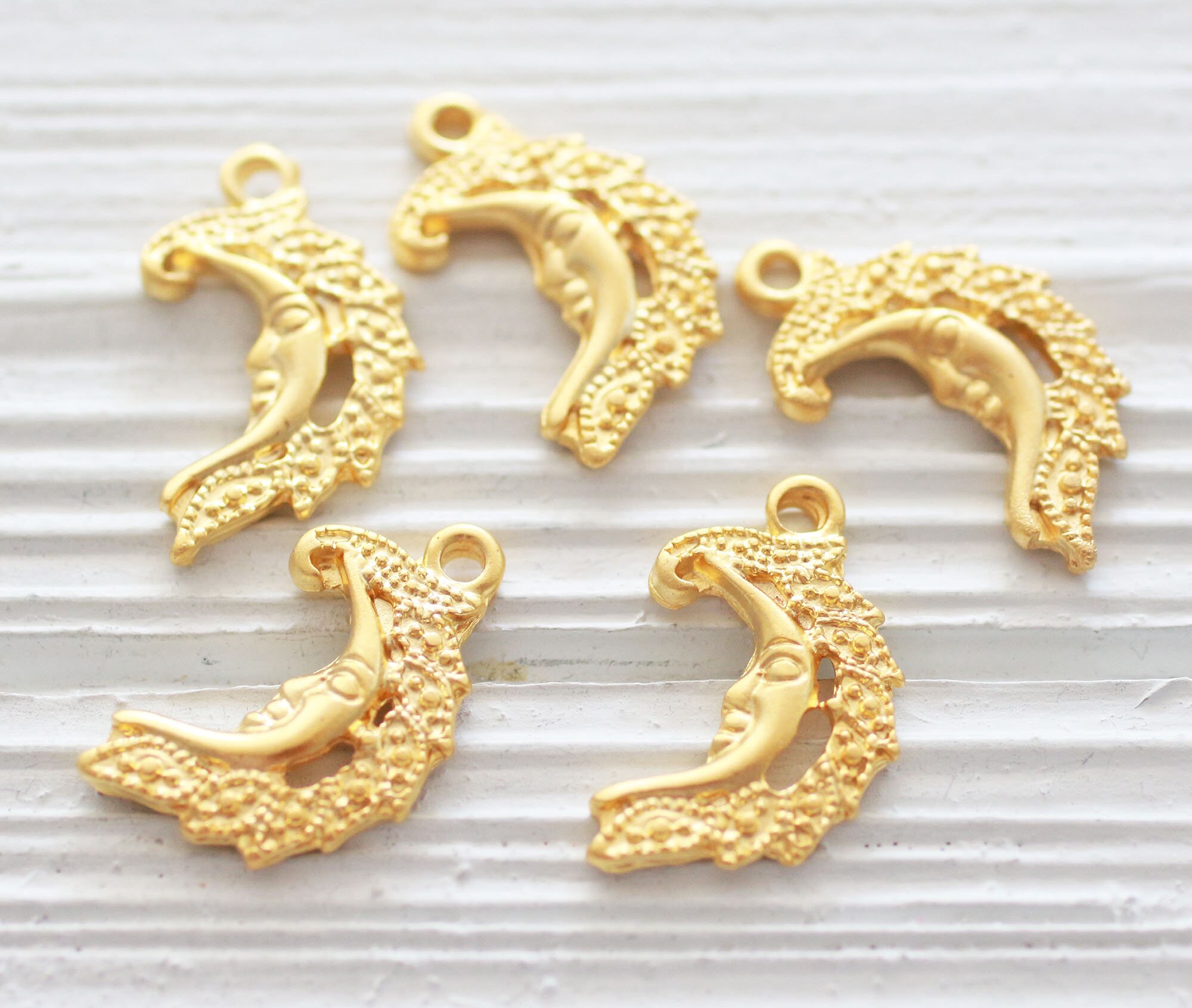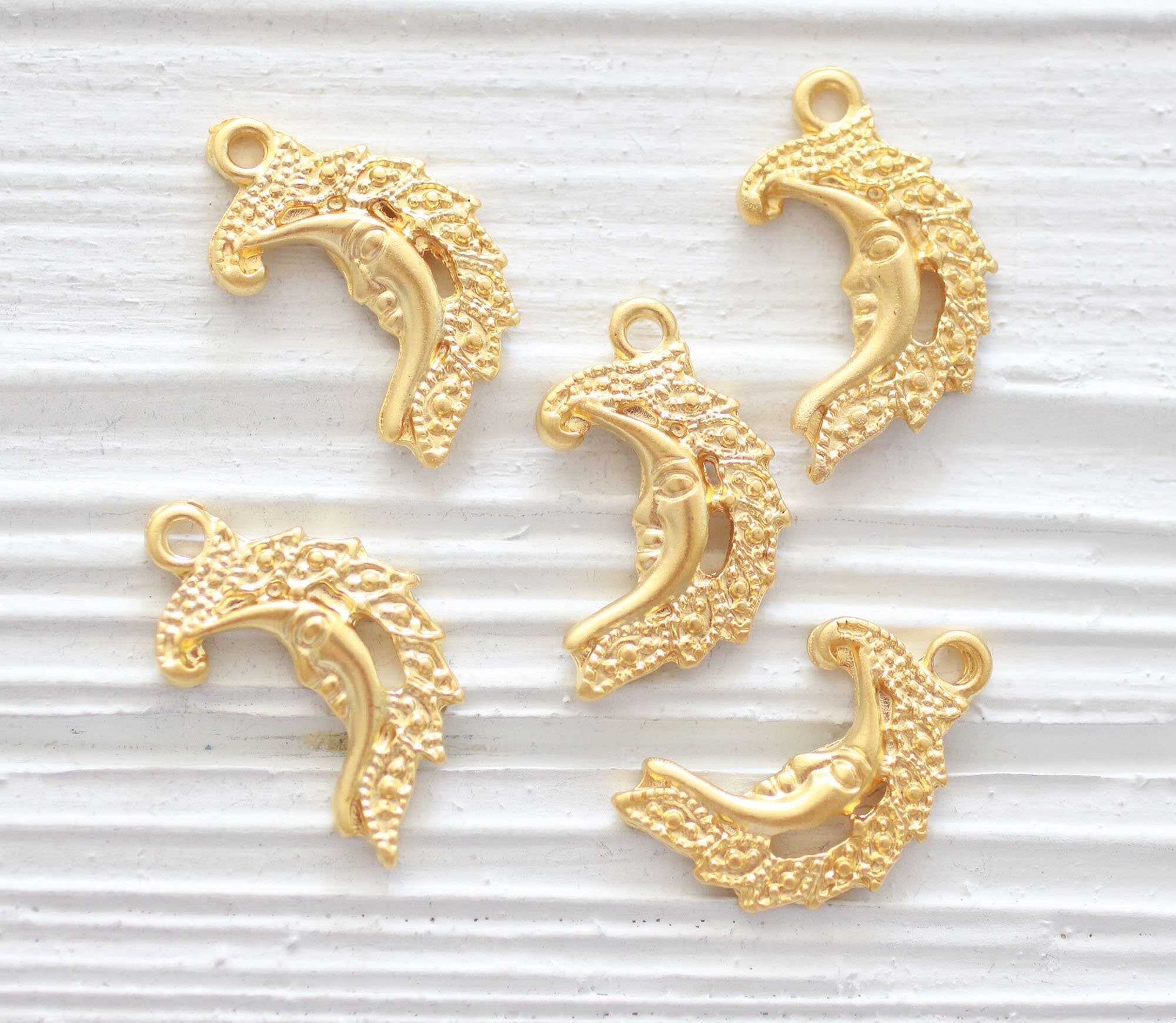 Crescent charms gold, large earrings charms pendant, crescent moon, unique findings, tribal crescent, just dangles, celestial charms
