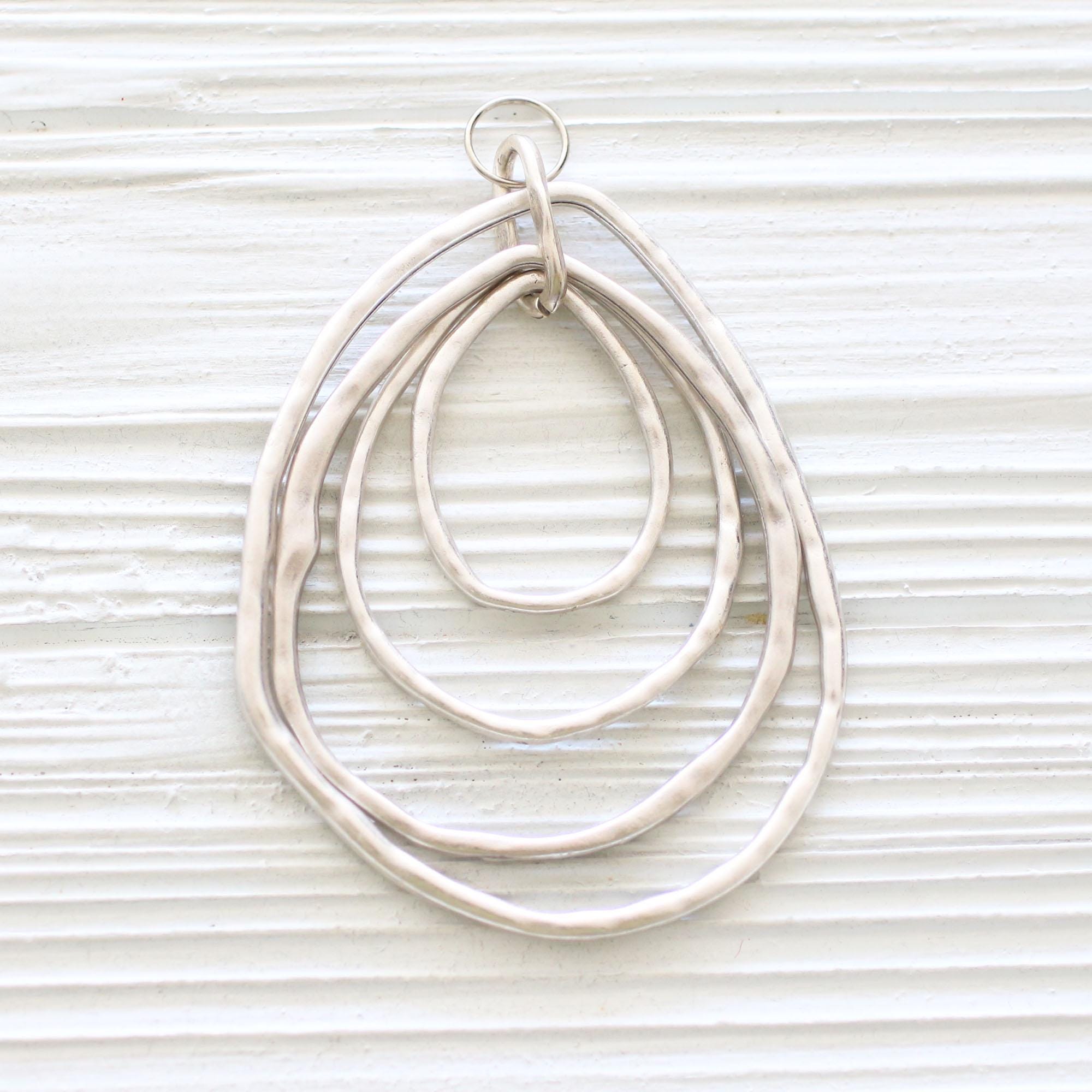 Organic shaped nested drop pendant, silver, large teardrop loops, chandelier pendant, hammered metal