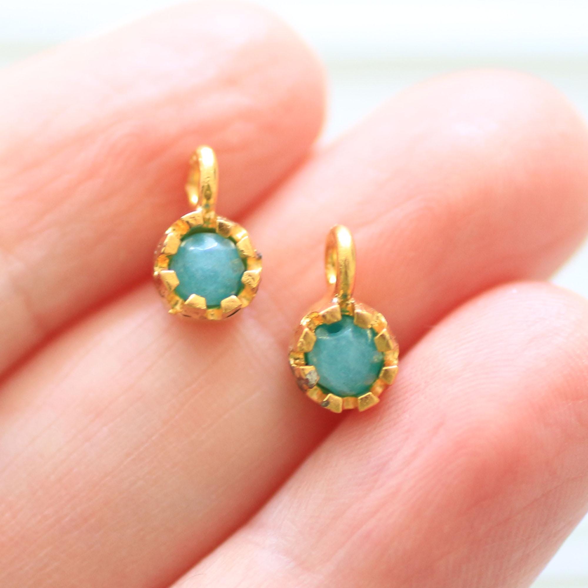 Turquoise blue earrings dangle beads, gold bezel bead charms, bracelet charms, round stone charms, mini boho charms for necklace