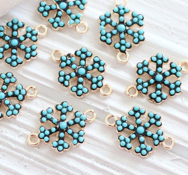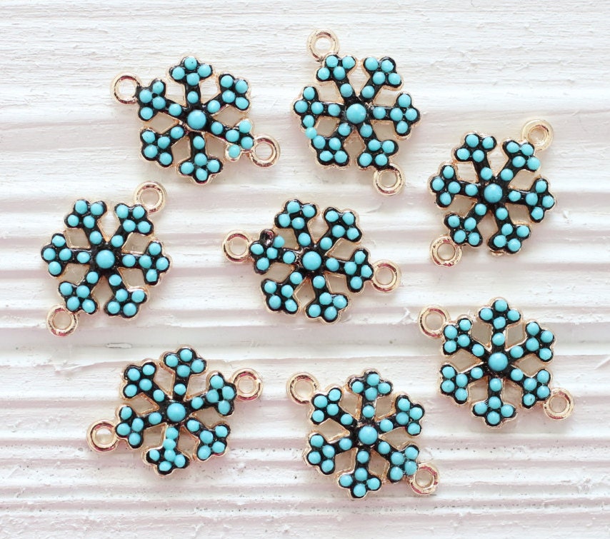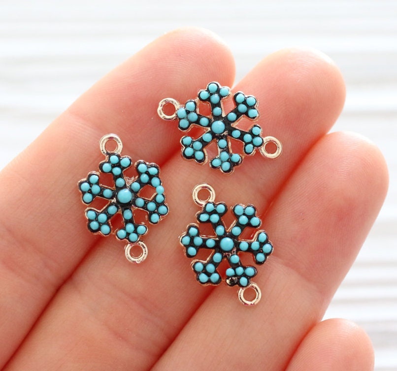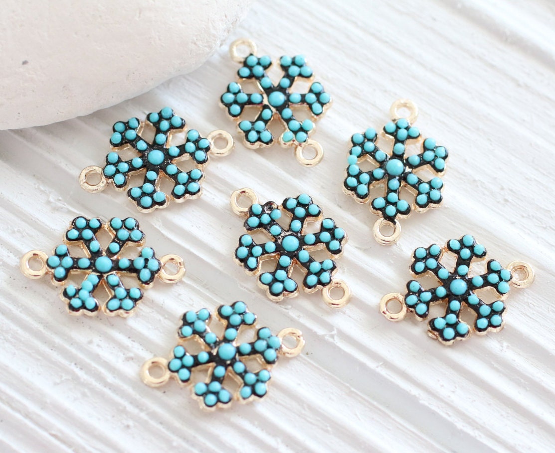 Mini snow flakes, turquoise beads, earring beads, snow flakes, bead charm, bracelet connector, snow flakes connector, turquoise findings