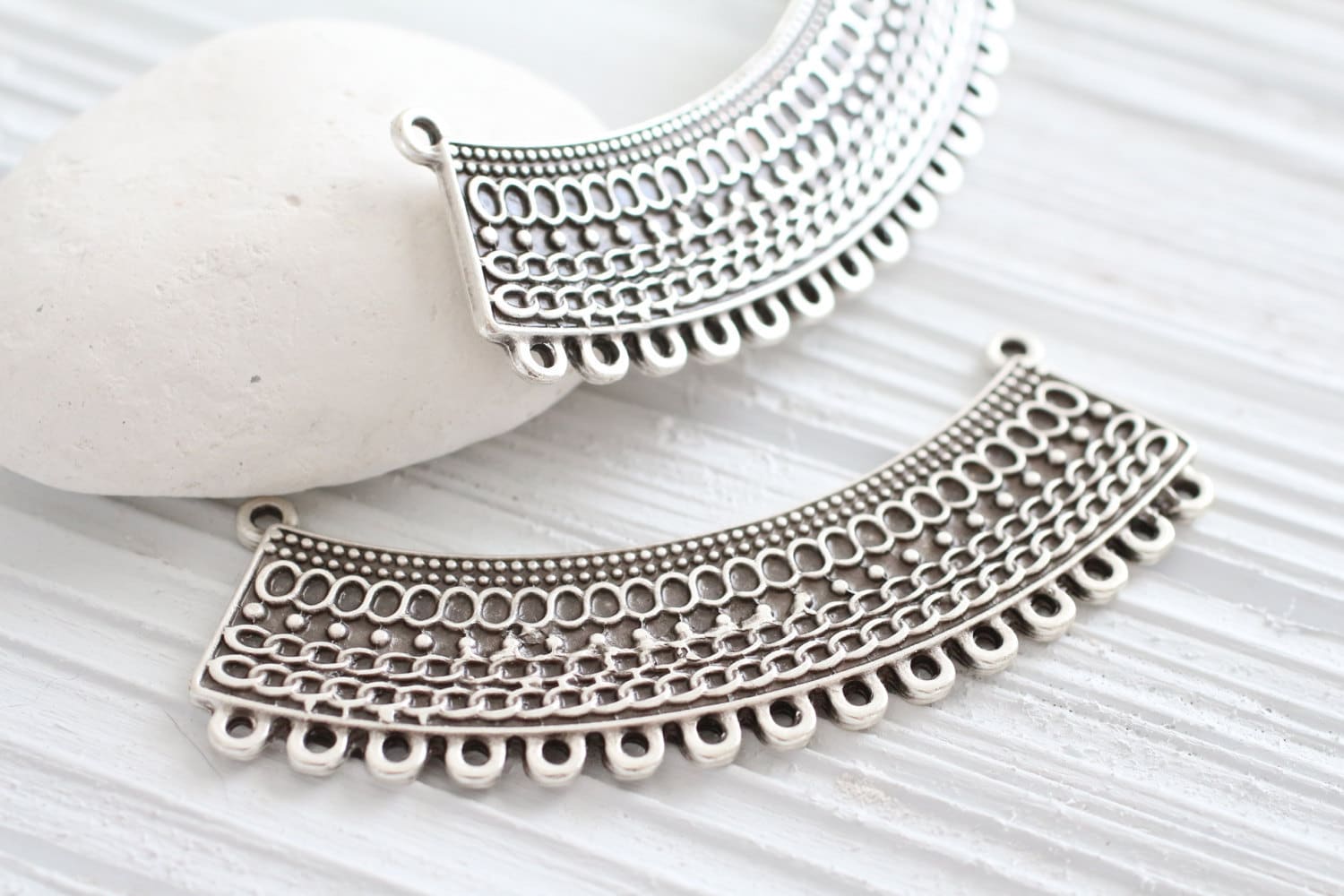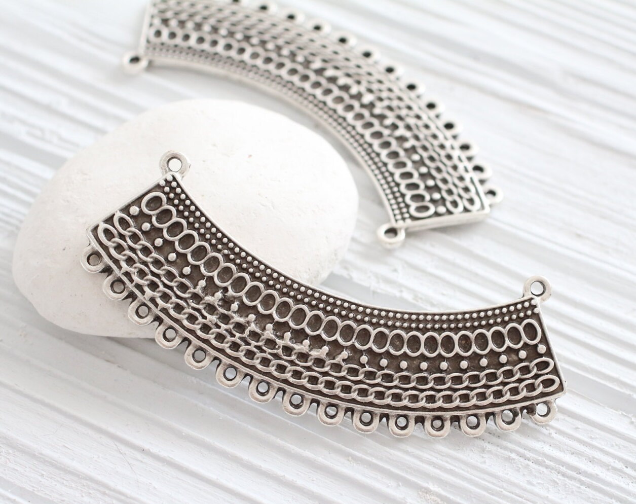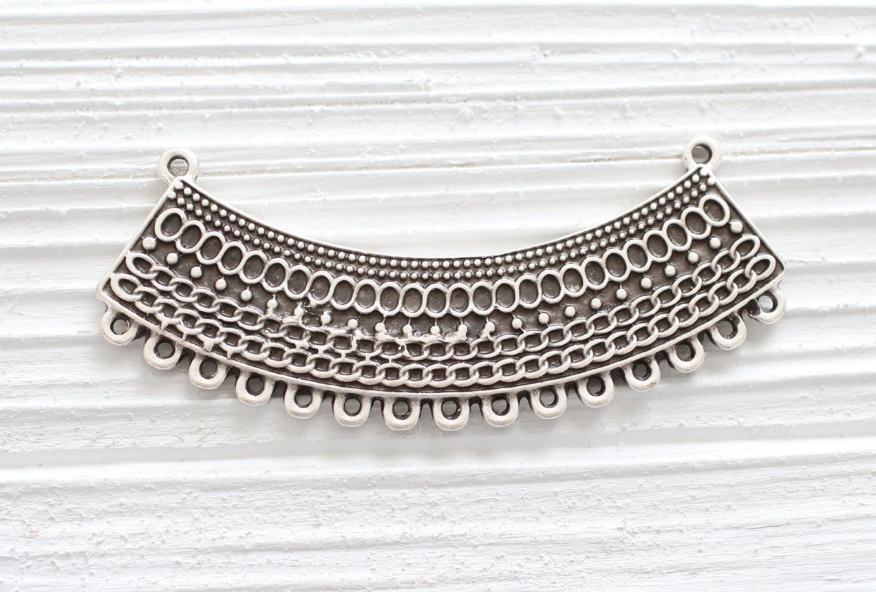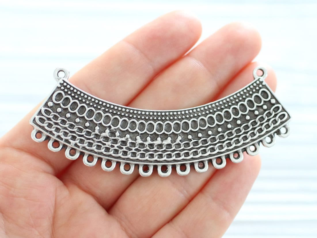 Crescent moon pendant, large connector, silver multi strand pendant, crescent pendant, bar connector, tribal, focal silver connector