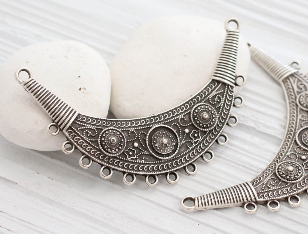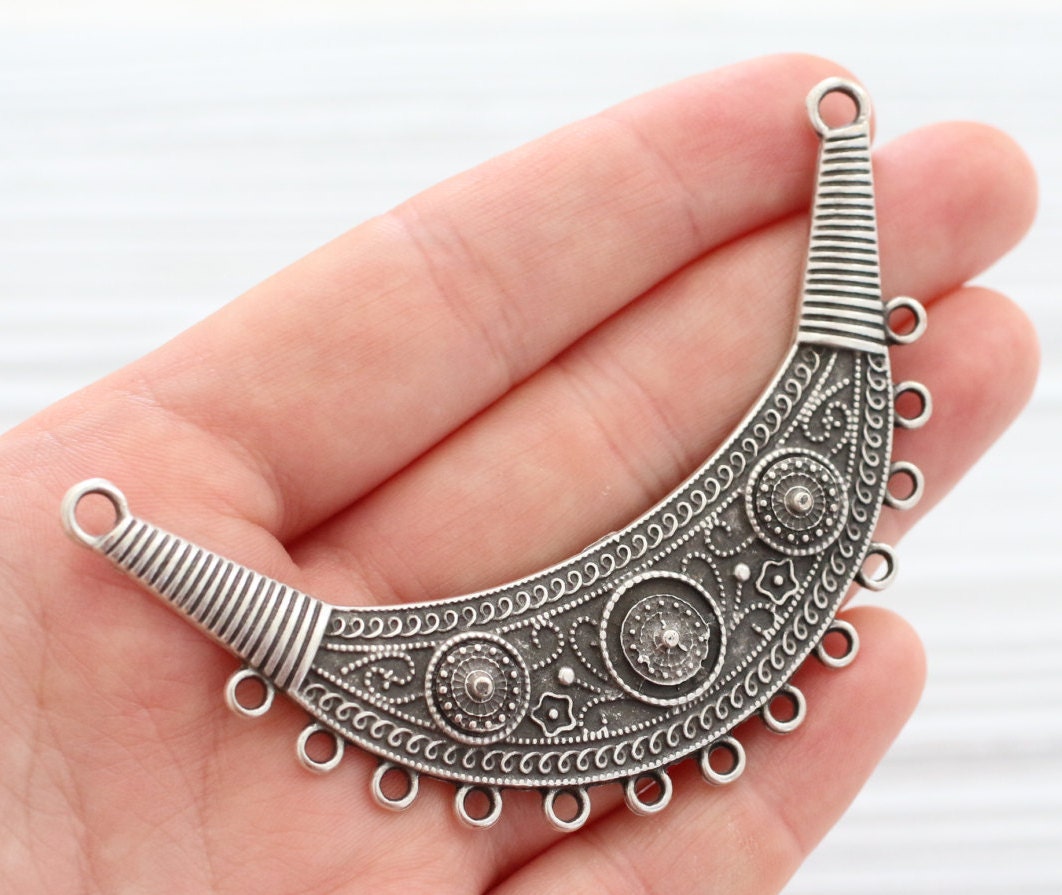 Tribal pendant, large antique connector, multi strand, metal collar, crescent, antique silver collar, boho pendant, crescent moon necklace