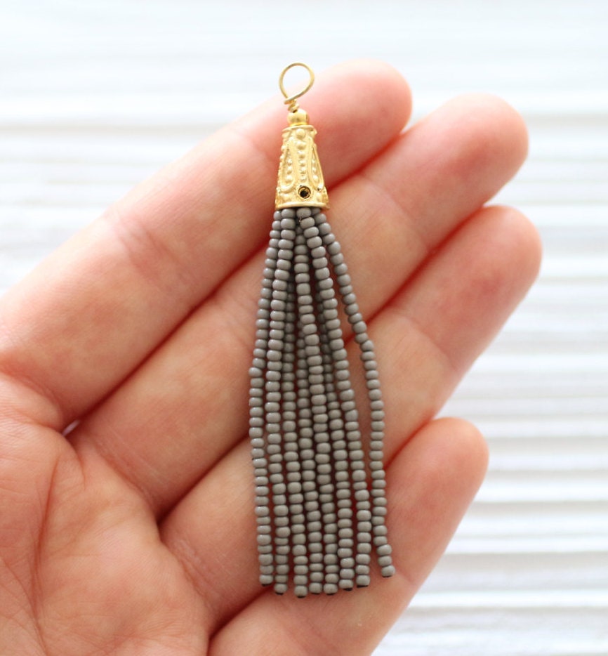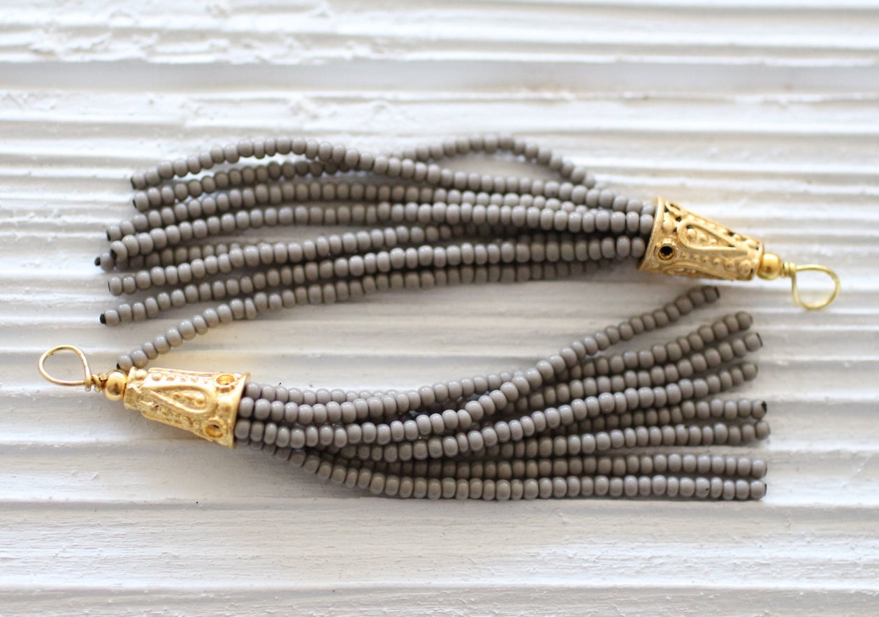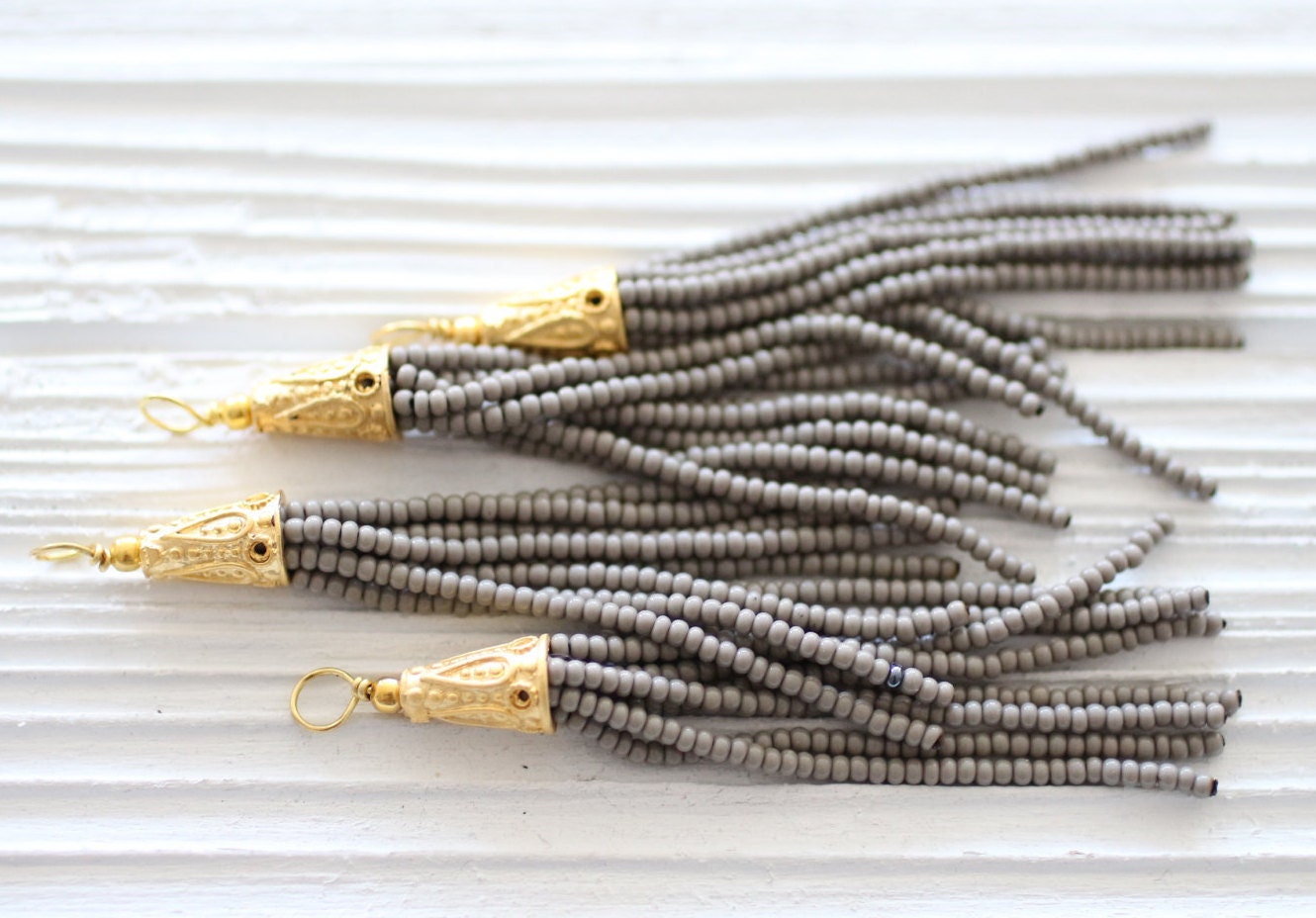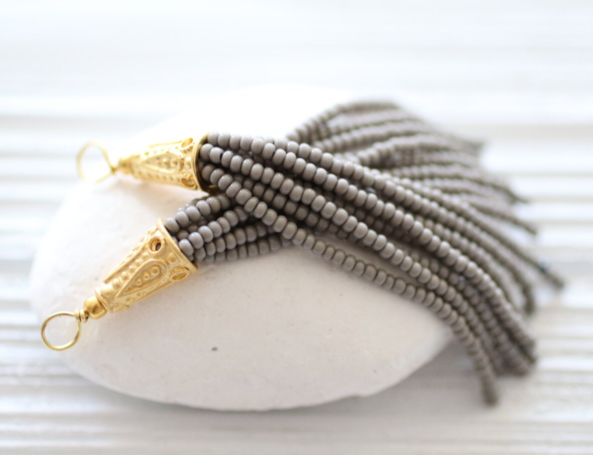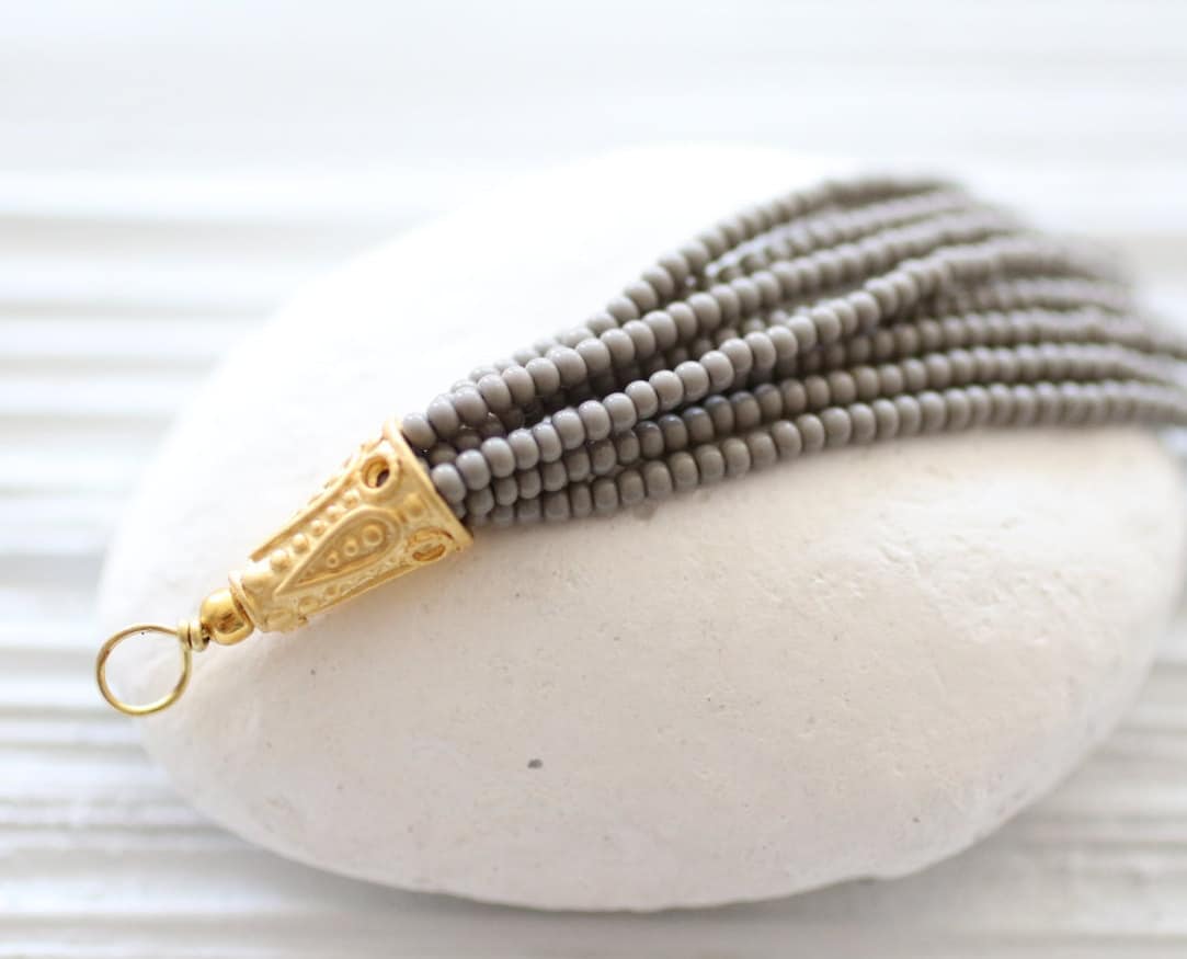 Gray beaded tassel, gold cap tassel, short bead tassel, seed bead tassel, tassel earrings, tassels for jewelry, bead tassel, necklace tassel