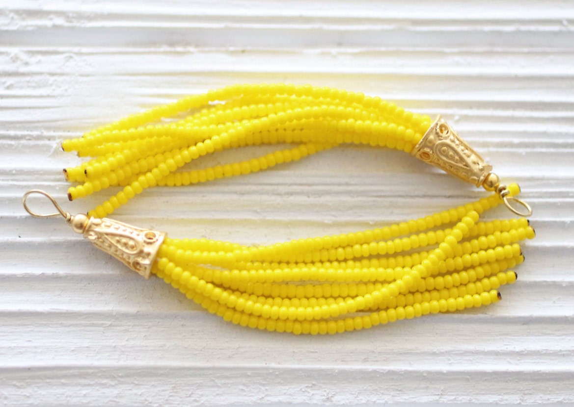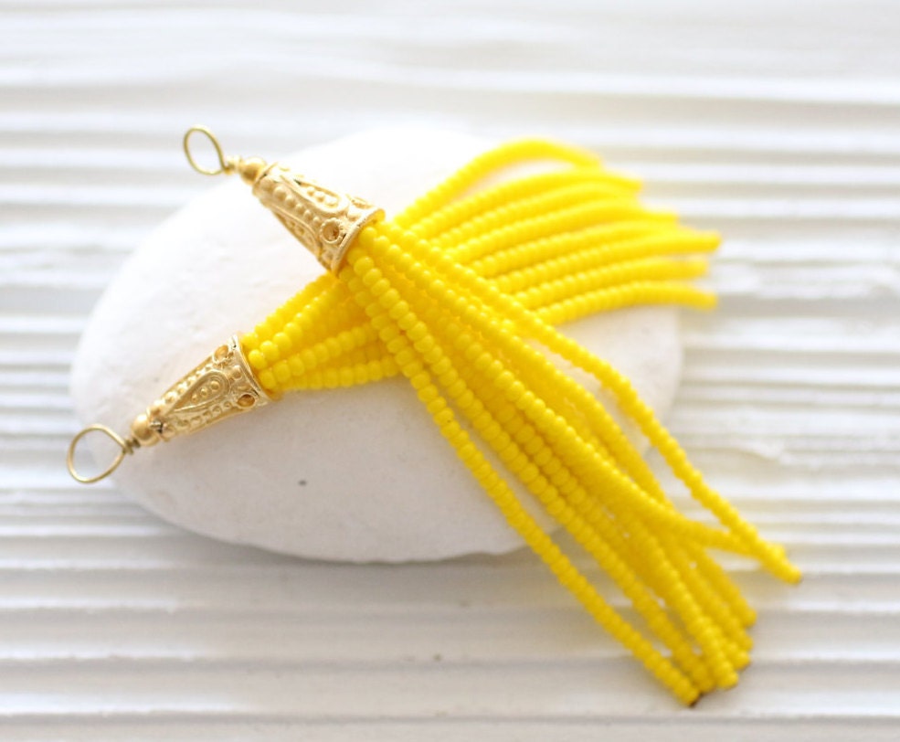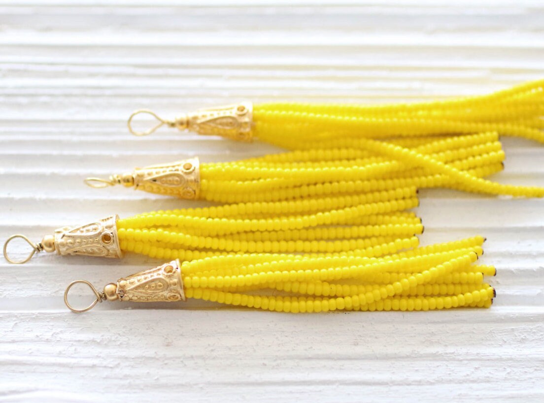 Bright yellow bead tassel, seed beaded tassel, gold cap bead tassel, yellow short tassel, jewelry tassels, beaded tassel, tassel pendant