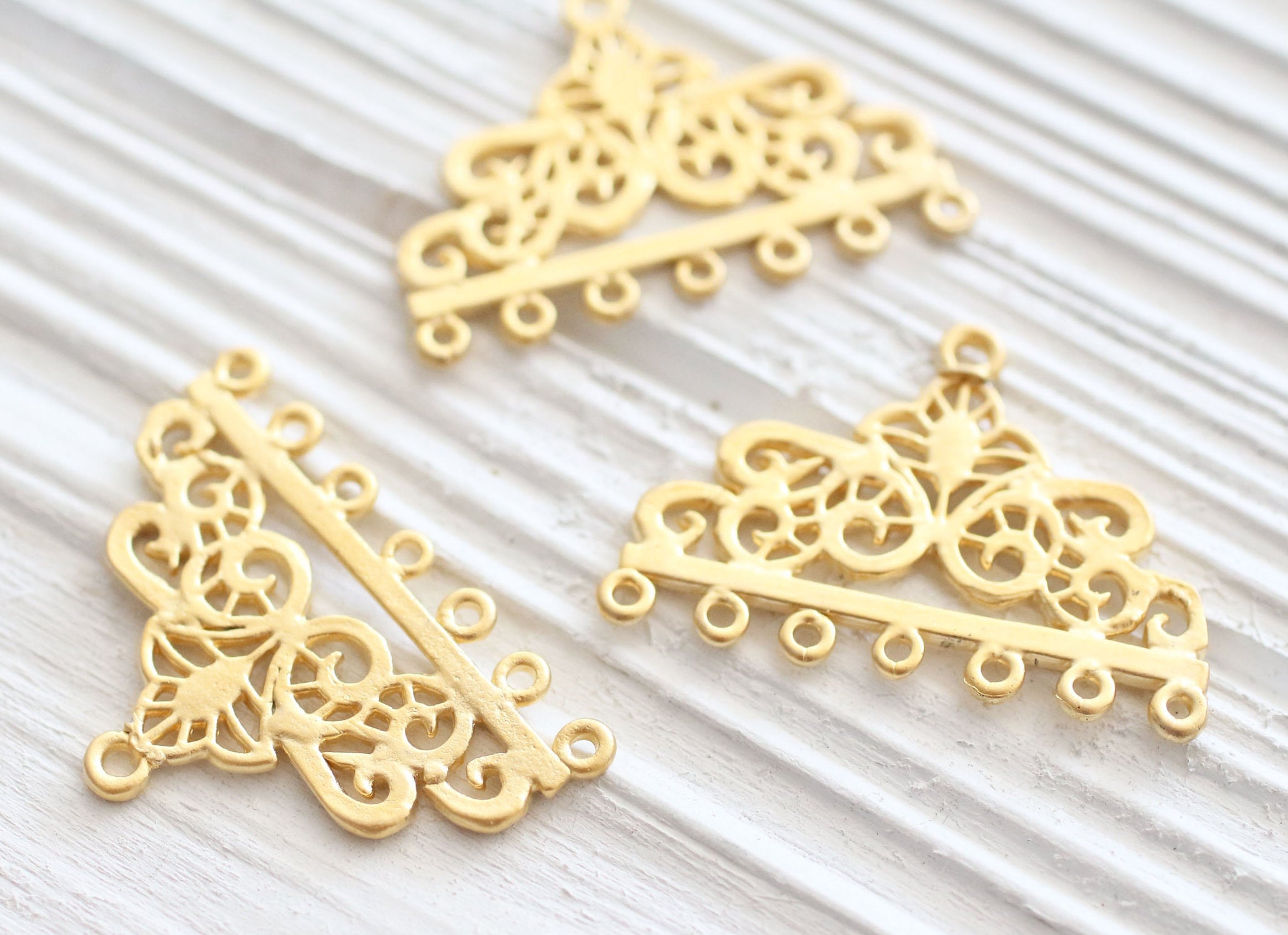 Large filigree gold pendant connector, unique filigree findings, multi strand jewelry connectors, gold filigree gold filigree end bar, earrings dangle