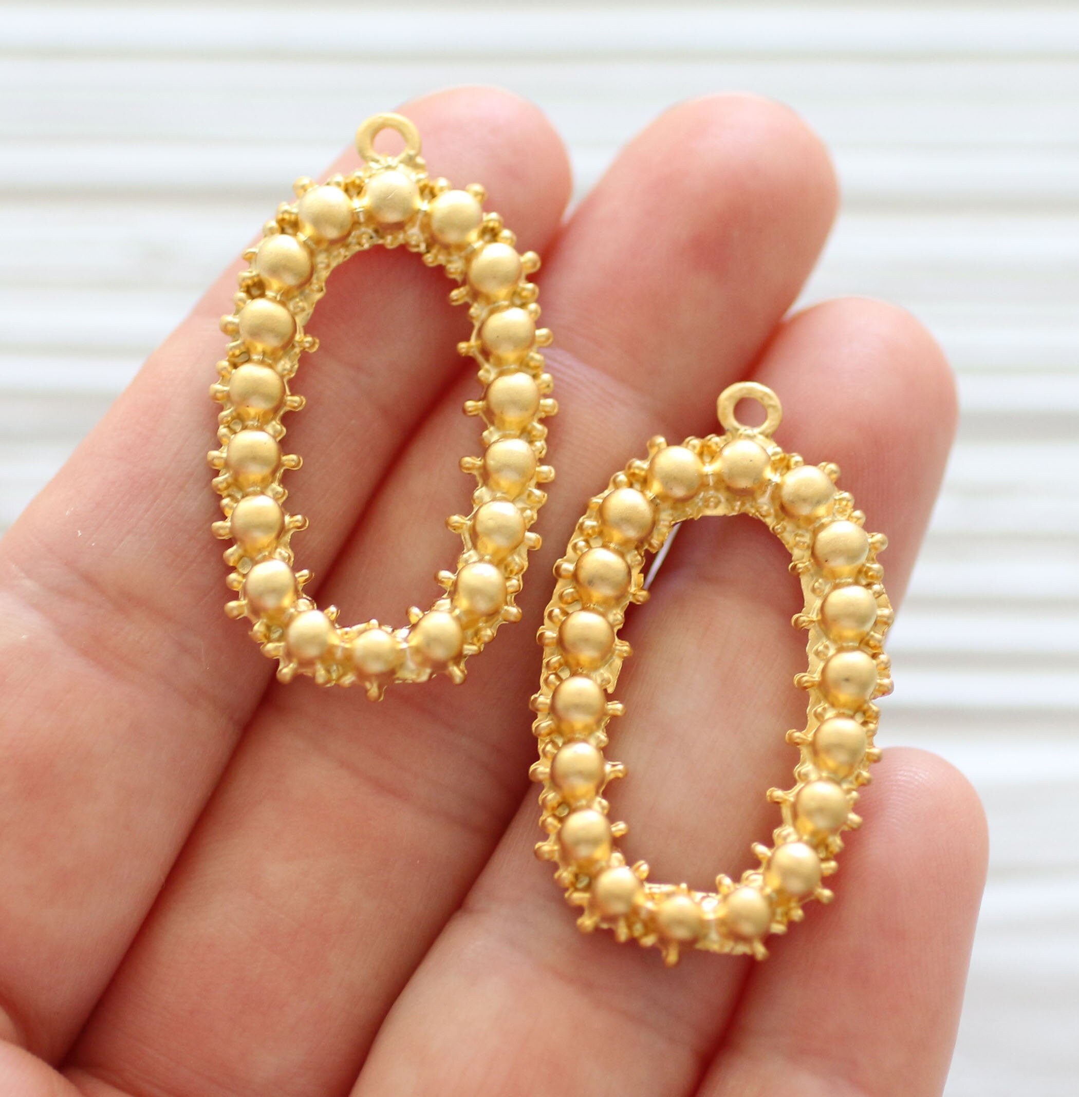 Modern gold charm pendant, large earrings charms, just dangles, oval pendant, gold findings, necklace focal piece, drop pendant
