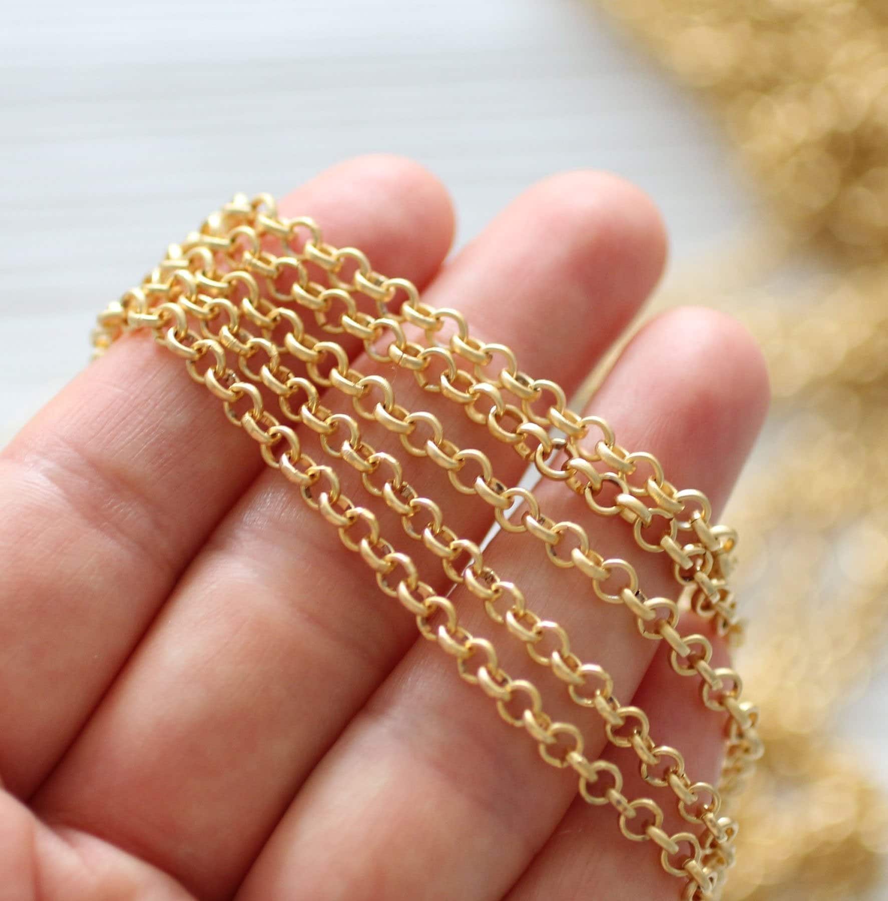 3.5mm rolo chain, 24K gold plated rolo chain, chain, matte gold chain, rolo chain, gold rolo chain, necklace chain, jewelry chain