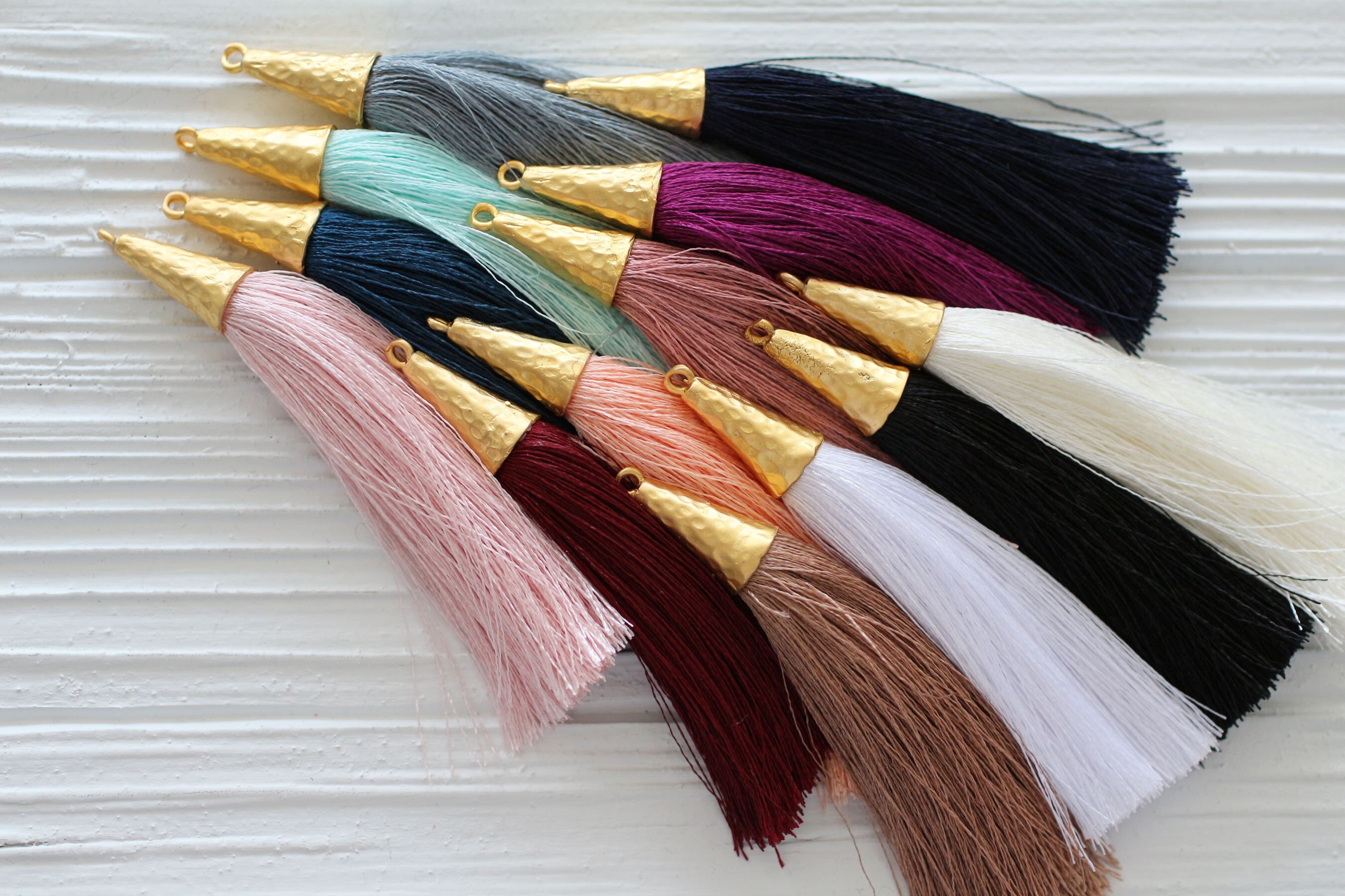 Don't forget to check our pom pom tassels, feather tassels, mini tassels, faux fur tassels, layered tassels, many more tassels with silver and gold caps in different sizes!