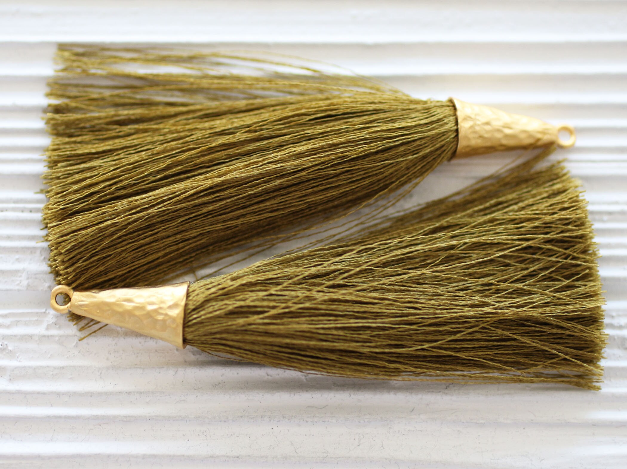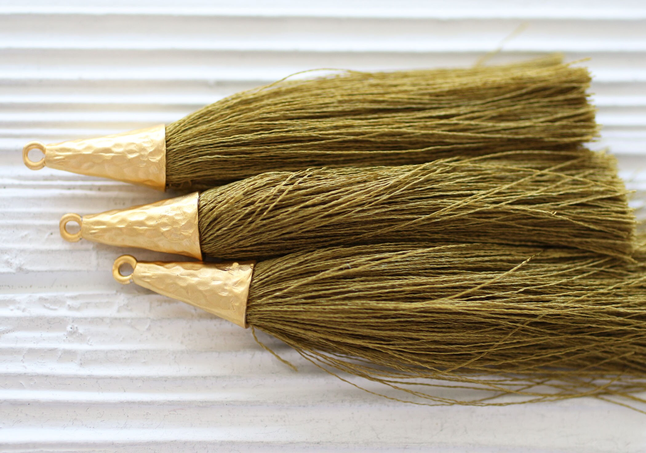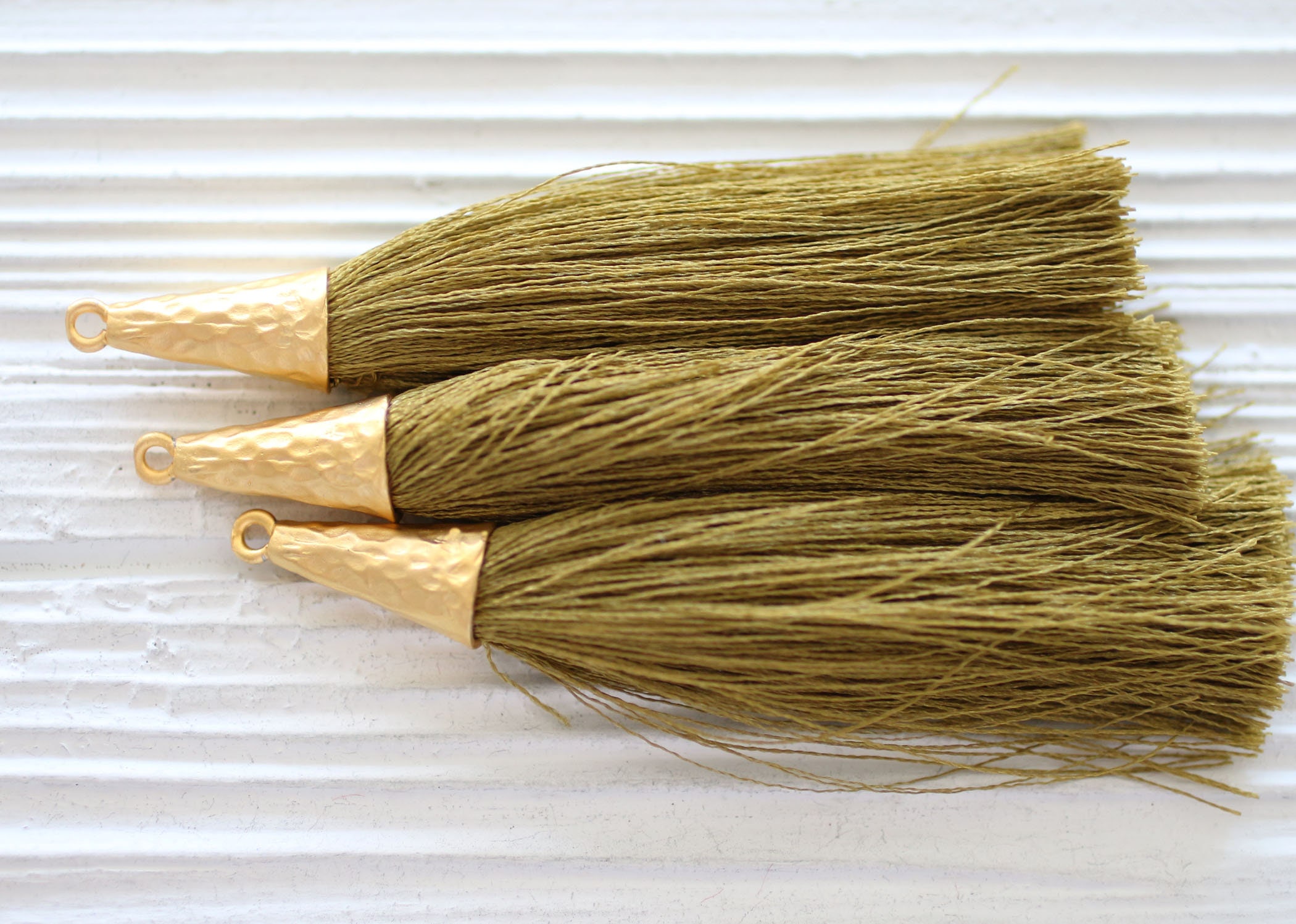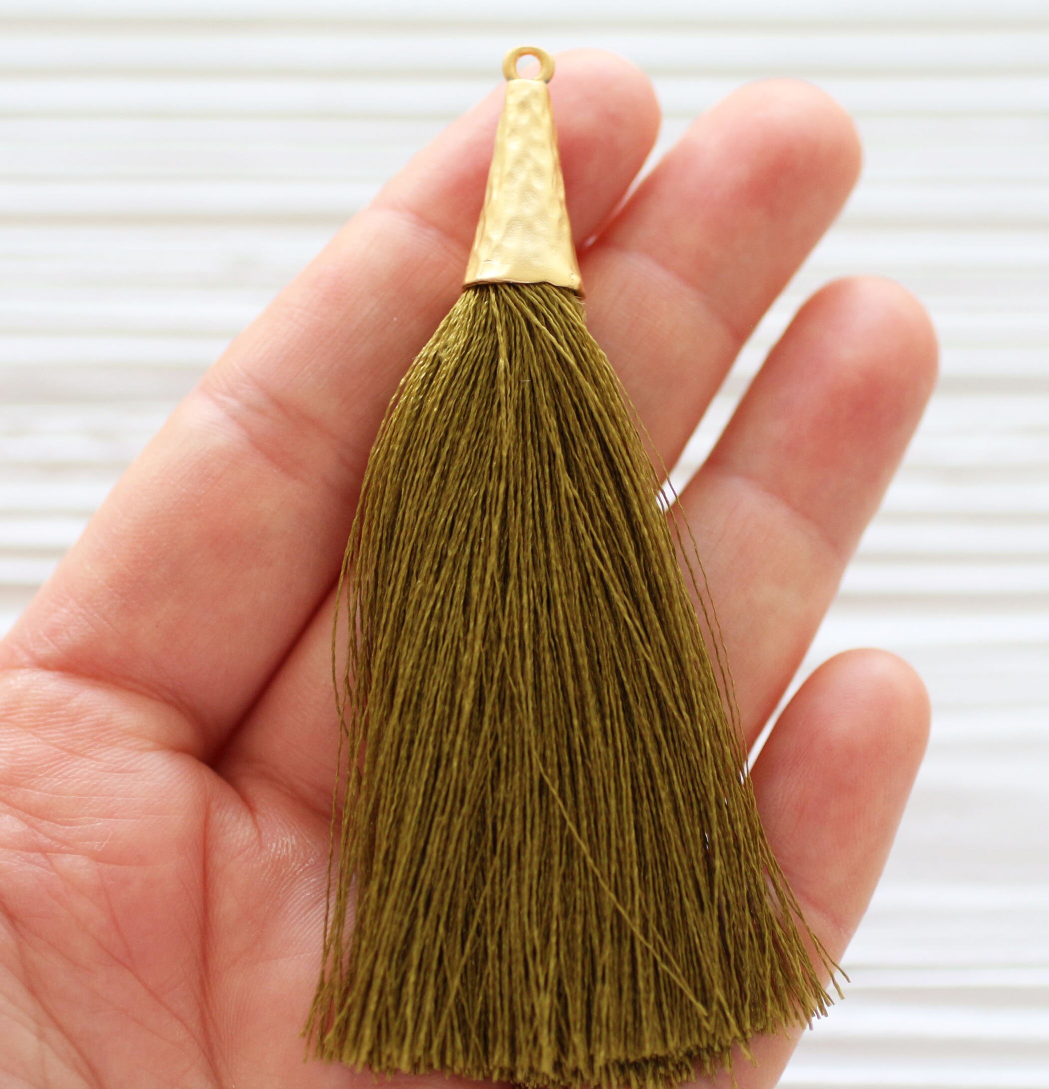 Olive green tassel, pistachio, lime green gold cap silk tassel, drawer knobs decor, mala tassel, tassel pendant, keychain tassel, khaki, N32