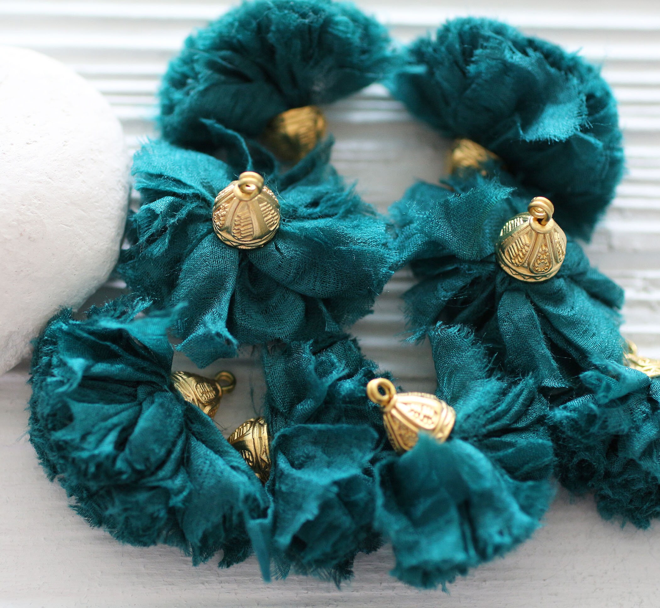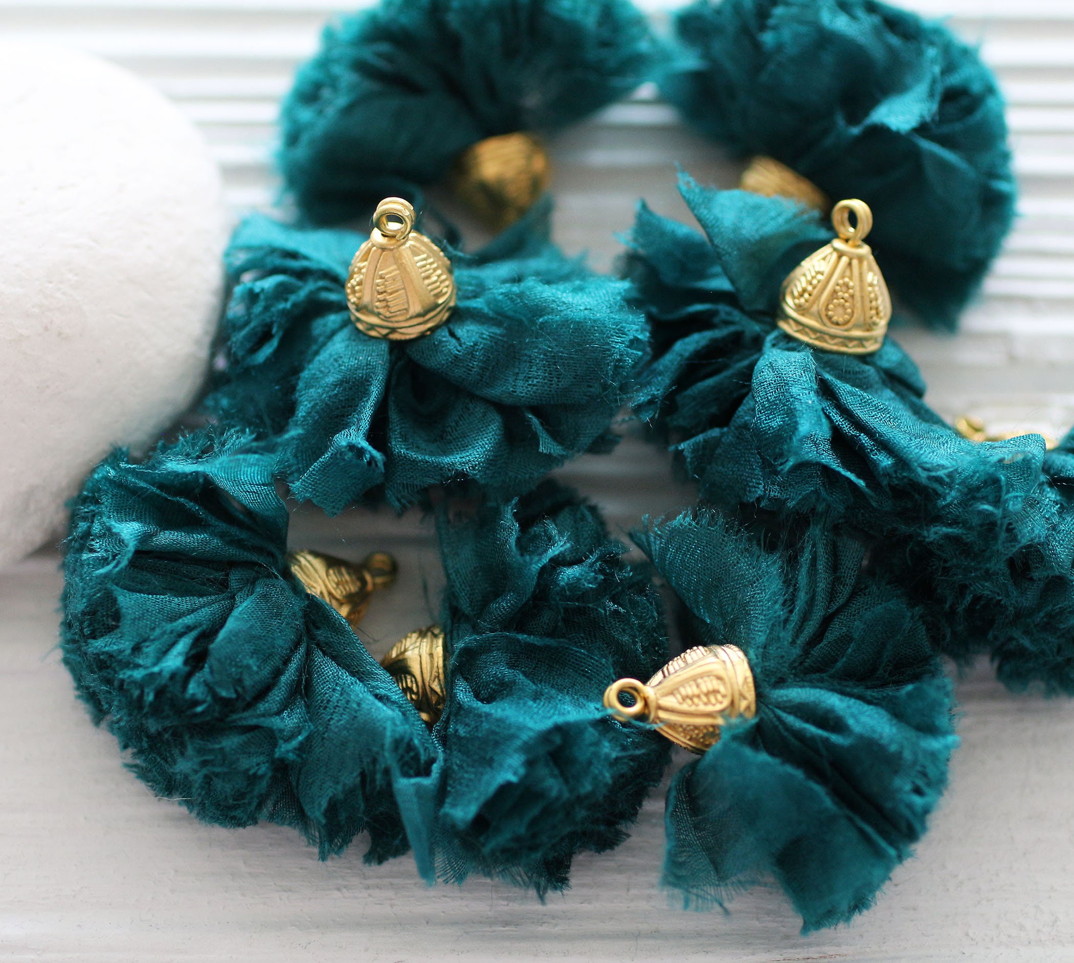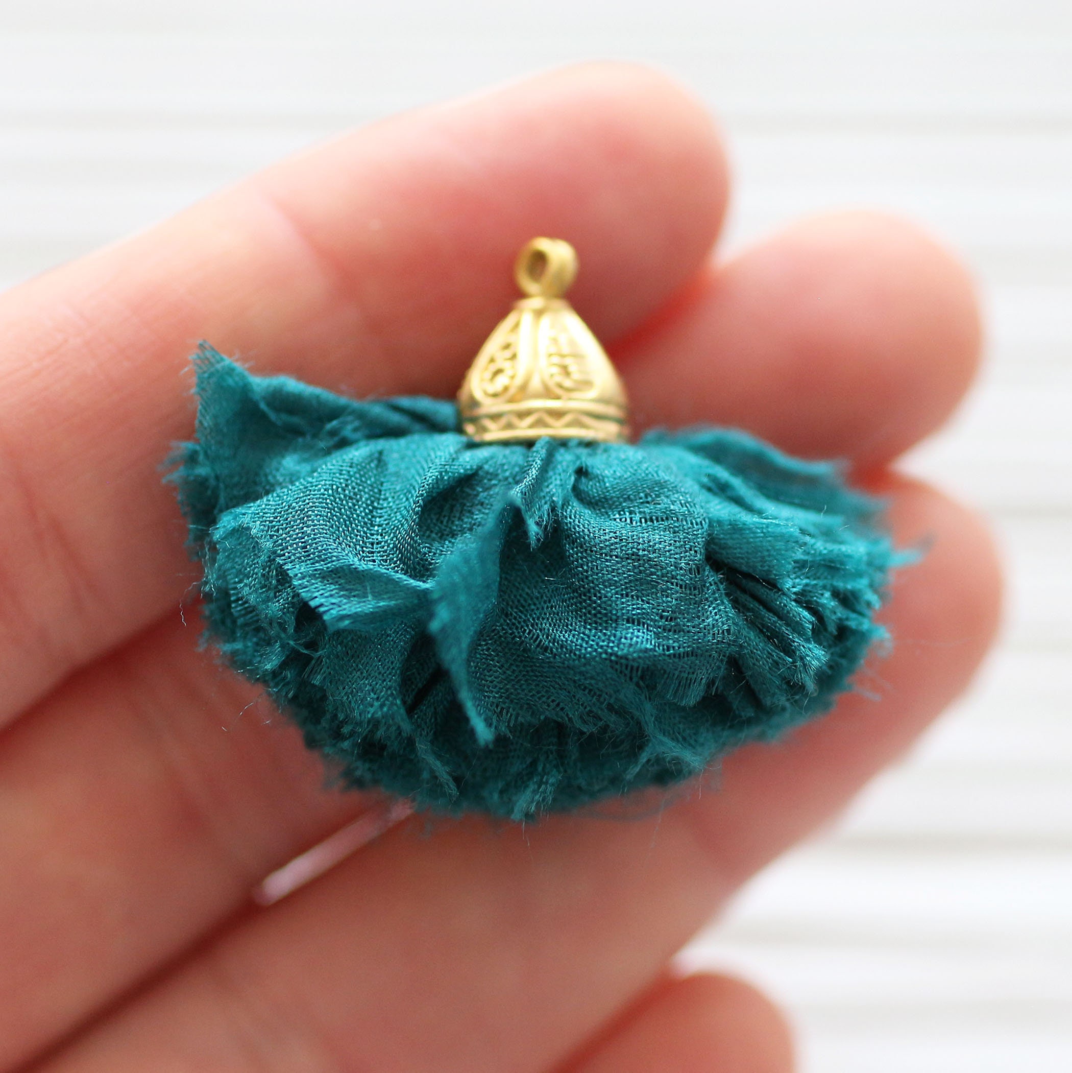 Teal tassel, teal sari silk tassel, silk pom pom tassel, tassel with cap, teal blue, keychain tassel charm, earrings necklace tassel